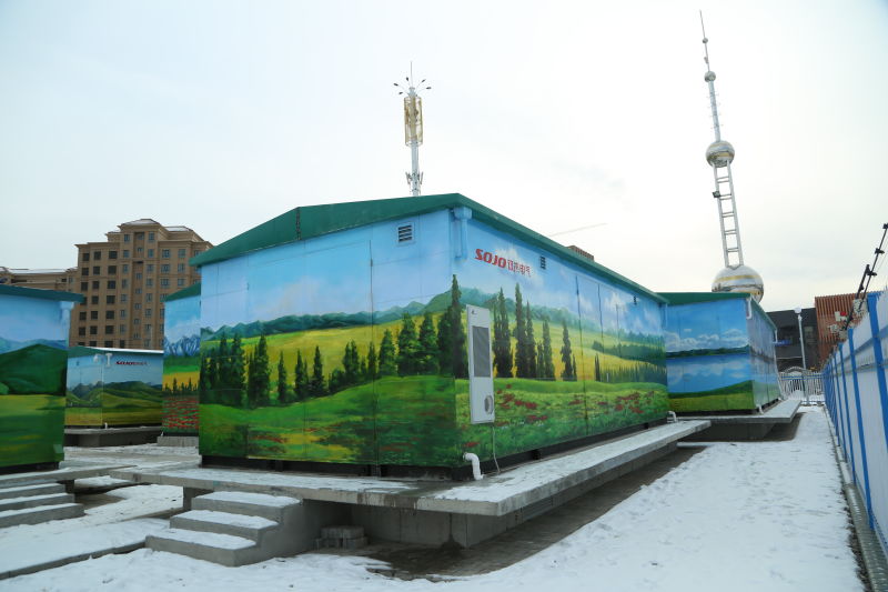 La empresa desde el aspecto de diseño, considerando los aspectos técnicos y para garantizar que el proyecto de parque de Xinjiang Hanbin en la protección del medio ambiente, salvo la zona de inteligente sistema operativo y otros aspectos de las necesidades generales, tambien considerar el entorno, especialmente de la pintura de paisaje pintado a mano decoración en general 35kV modular de la subestación subestación de Shell, y el medio ambiente com.